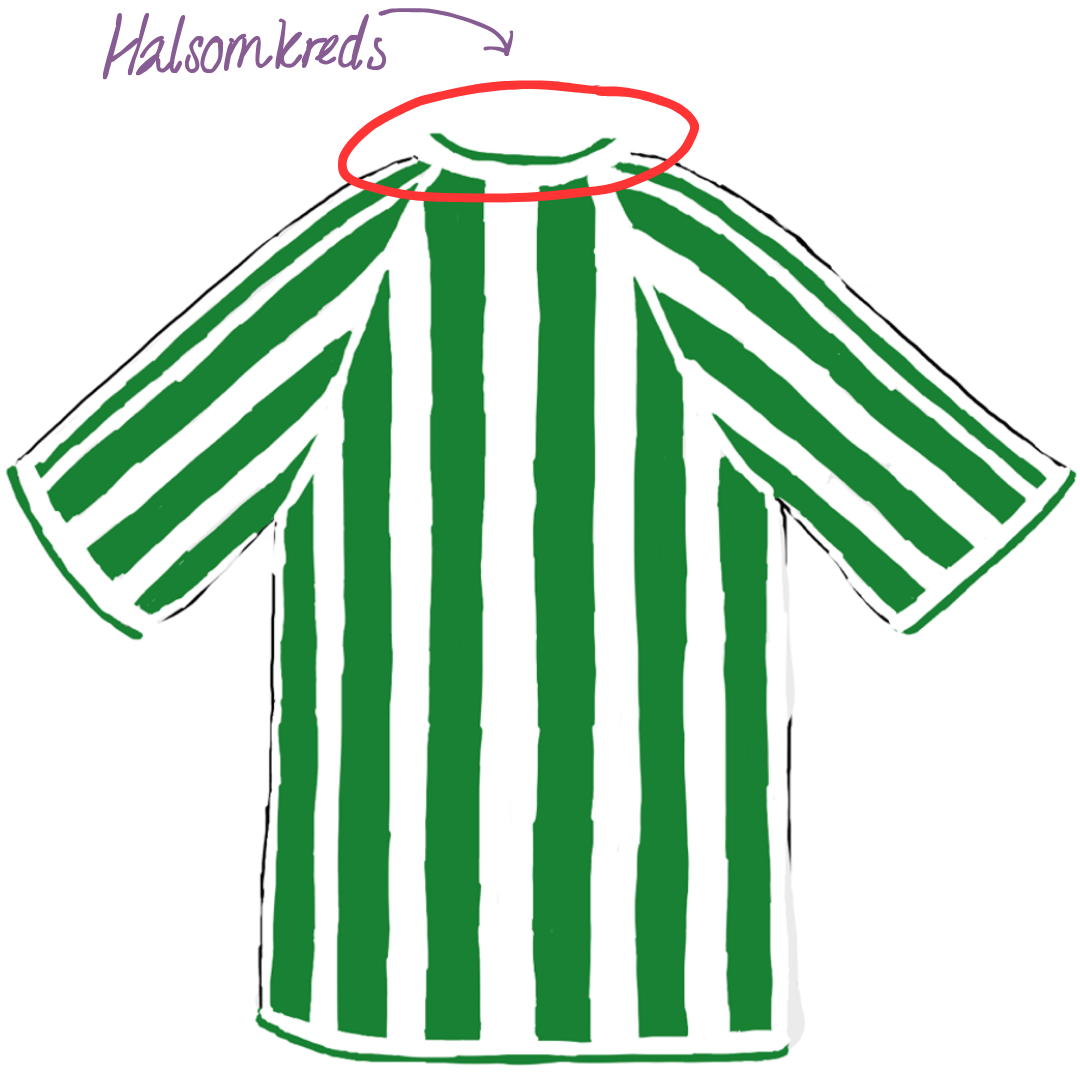 I opskriften gives der detaljerede anvisninger til, hvordan du opnår samme pasform som den originale grønne Football Jersey. Disse kan bruges som udgangspunkt, når du tilpasser opskriften til dine egne mål.